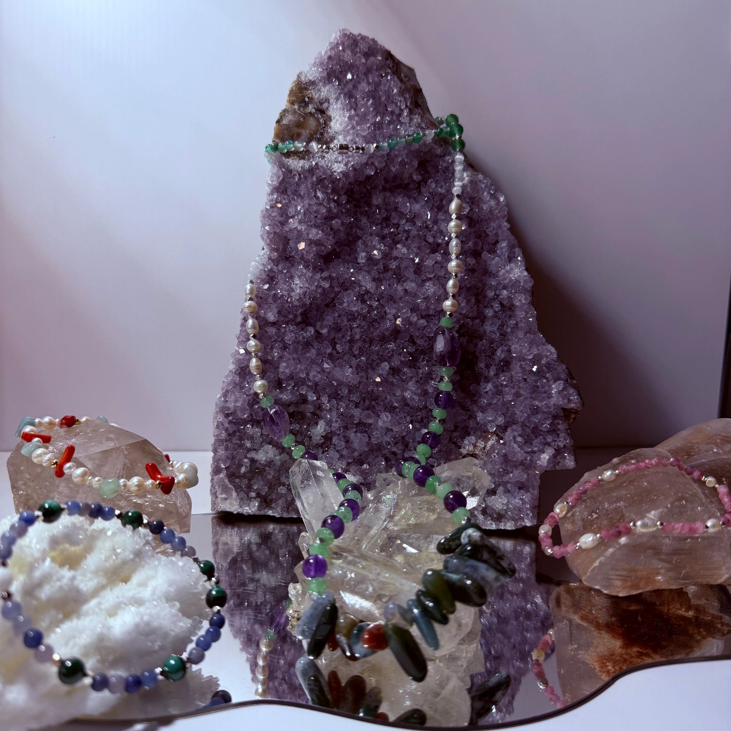 Our handmade crystal jewelry features ethically sourced crystals, crafted with love and care to create a harmonious interaction between a variety of stones. Each bracelet is thoughtfully made to enhance the natural holistic wellness properties of the crystals, promoting balance, energy, and well-being. Whether for healing, protection, or personal expression, these bracelets foster a special connection to the power of nature’s elements.